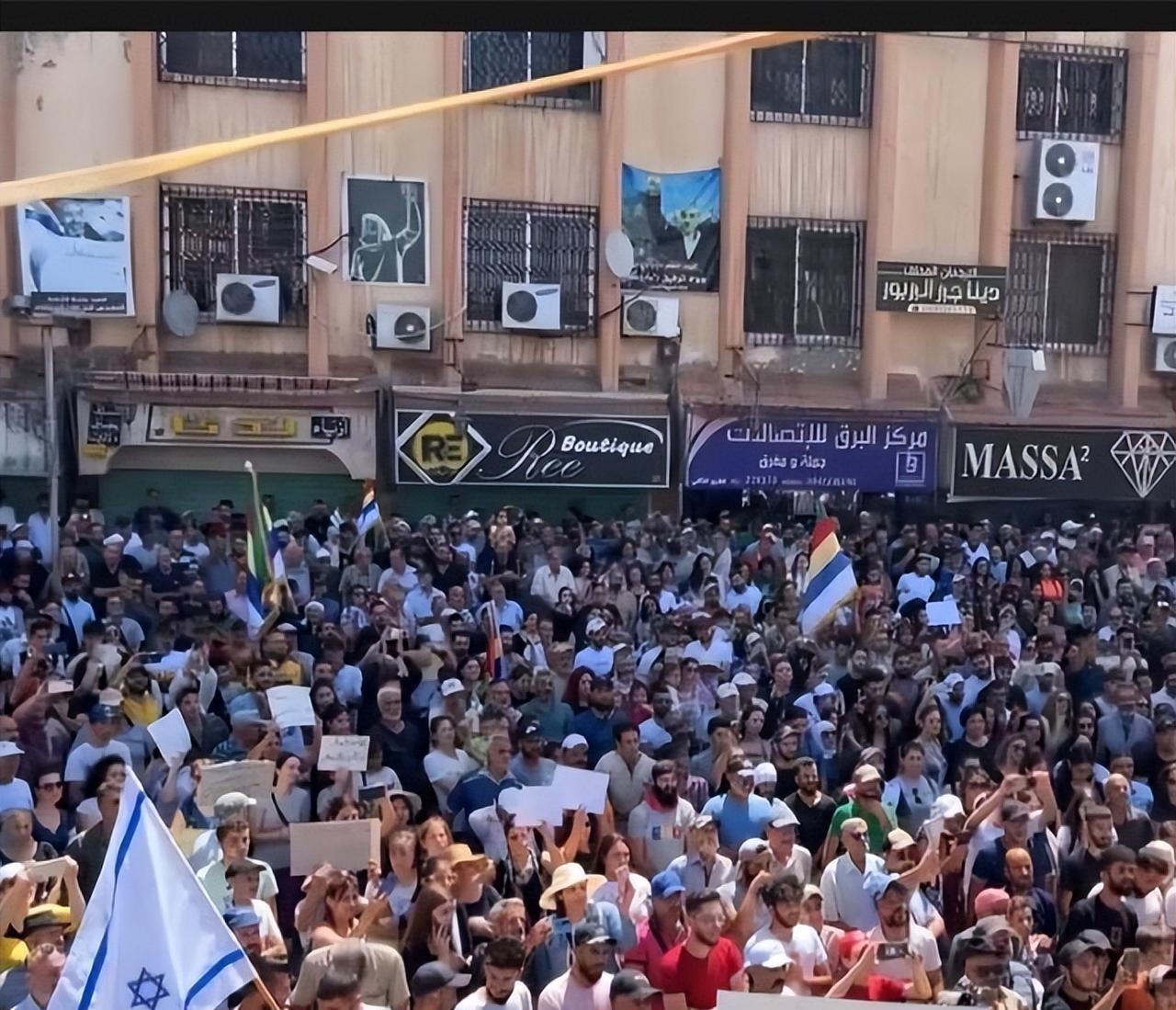 叙利亚苏韦达市,今天支持自治的德鲁兹人举行集会,现场以色列国旗的数量是前所未有的