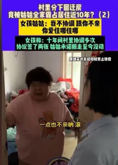 河南郑州,村里分拆迁房,女子分得一套,正好出嫁的姑姑,他们村也拆迁,没地方住,她就搬到了女子这套房,结果一住就霸占了近10年,她那边的房子分到之后,她就拿来出租,然后住在女子的房子里,一家人霸占,不愿把房子还给女子了,害得女子在外租房10年。 根据8月16日的报道,事情得从村里分回迁房说起。小王(化名)打小命运就有点坎坷,父亲早逝,母亲改嫁,她是跟着爷爷奶奶和叔叔长大的。本想着有亲人陪着,日子虽苦也能过,可后来,爷爷奶奶和叔叔也先后离世,在这世上,最亲的人就剩下姑姑了。 当时村里给小王分了一套回迁房,这房子,本是能给小王一些生活底气的,结果姑姑家因为自家拆迁没地方住,就搬到小王这套房子里。 刚开始,小王想着姑姑是亲人,暂时借住也没啥,可谁能想到,这一住,就没了尽头。姑姑家在自己那边的房子分到后,不但没搬回自己家,反而把那套房子拿去出租,继续霸占着小王的房子。这一占,就是近 10 年。 这 10 年里,小王一直在外租房住,居无定所。她不是没找过姑姑,想把房子要回来,可每次一提这事儿,姑姑要么说 “我不协调,跟你不亲,你爱住哪住哪”,要么就态度恶劣地把她往外赶。 村里也帮忙协调过好多次,协议都签了两张,姑姑每次都答应搬走,可转身就把承诺抛到脑后,依旧住在房子里,丝毫没有要搬的意思。 小王这一路走得太难了。她本就经历了亲人接连离世的打击,唯一的姑姑,本应是她在这世上的温暖依靠,却因为一套房子,变得如此冷漠。她性格其实挺温和的,可面对房子被霸占的事儿,也只能一次次鼓起勇气去讲道理,哪怕得到的是姑姑的恶语相向。 而且小王之前也曾两次提出诉讼要求姑姑归还房子,顾忌着两人之间的亲情又两次撤诉。这次小王表示一定要寻找法律程序,不想再外面漂泊了。 这事儿在网上传开后,网友们都炸开了锅。 有人说:“亲情在利益面前,咋就变得这么脆弱,这姑姑太过分了,自己有房子还占着侄女的,让侄女没地方住。” 也有人感慨:“小王太可怜了,亲人一个个离开,连唯一的房子都被霸占,这日子得多难啊。” 希望小王能早日要回属于自己的房子,在这世上,能有一个真正属于自己的、安稳的家,也希望姑姑能明白,亲情不该被房子这样的利益毁掉,别等到失去了,才知道珍惜 。 这事儿也让大家明白,亲情珍贵,但遇到利益冲突时,也得学会用合理合法的方式保护自己。不管关系多亲,该讲清楚的事儿得讲清楚,遇到不讲理的,也不能一味忍让,该维权就得维权。 同时,也让人们看到,在一些家庭纠纷里,法律和道德得同时发力,道德约束不了的,法律得跟上,这样才能让善良的人不被欺负,让亲情别被利益完全扭曲。 对于这件事情,你们怎么看?