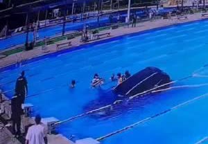 SUV失控冲进泳池已换水恢复营业,馆方回应SUV冲进泳池2人被救 8月15