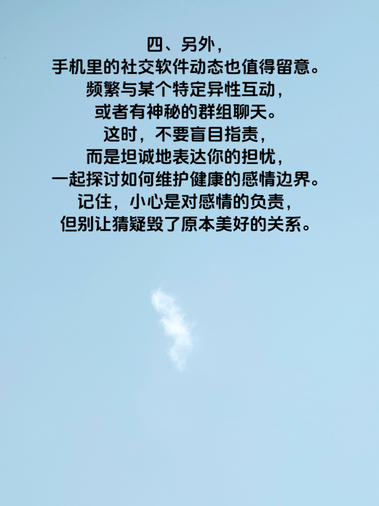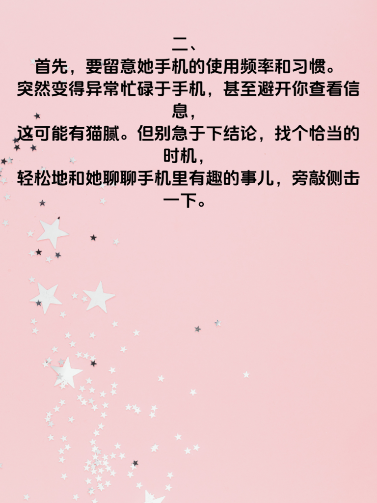 一、在感情的世界里,手机常常成为窥探另一半秘密的窗口。当你发现老婆手机似乎藏着4大秘密时,内心难免会涌起不安。其实,这或许是你们感情发出的一种信号。 二、首先,要留意她手机的使用频率和习惯。突然变得异常忙碌于手机,甚至避开你查看信息,这可能有猫腻。但别急于下结论,找个恰当的时机,轻松地和她聊聊手机里有趣的事儿,旁敲侧击一下。 三、再者,关注她对某些来电或信息的反应。若总是神色慌张地回避,那就要提高警惕了。不过,沟通才是解决问题的关键,以平和的态度问问她,尊重她的感受,也让她知道你在意这段感情。 四、另外,手机里的社交软件动态也值得留意。频繁与某个特定异性互动,或者有神秘的群组聊天。这时,不要盲目指责,而是坦诚地表达你的担忧,一起探讨如何维护健康的感情边界。记住,小心是对感情的负责,但别让猜疑毁了原本美好的关系。