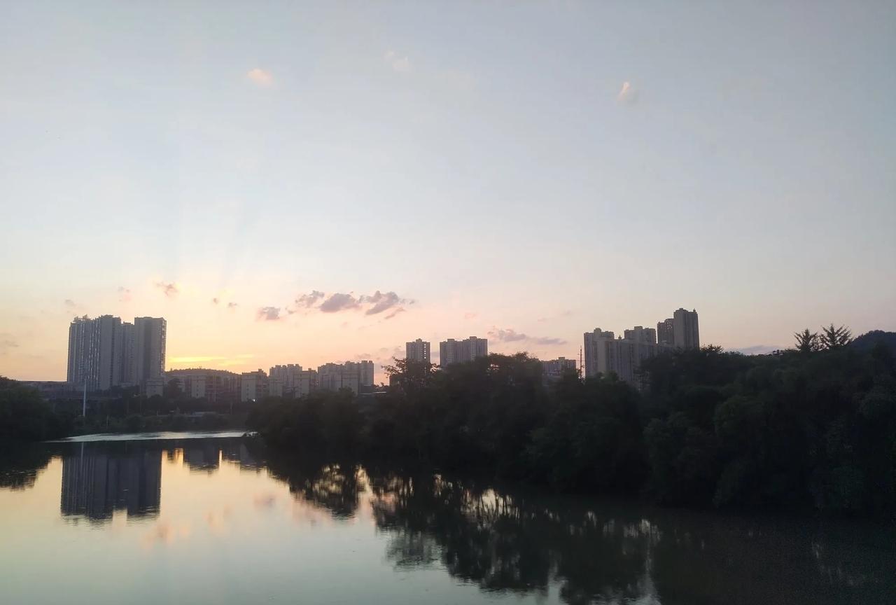 #晒图笔记大赛# 这是我在东安紫水湿地公园的湖塘大桥上拍的照片,时间傍晚六点半钟左右。