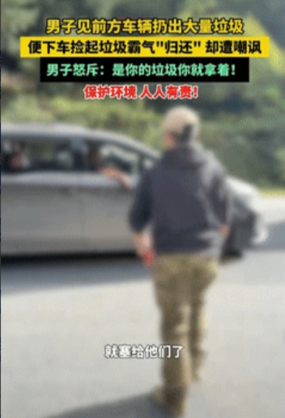 这不是较真!”西藏林芝,一男子见前方车辆扔出大量垃圾,便下车捡起来“霸气”归还,
