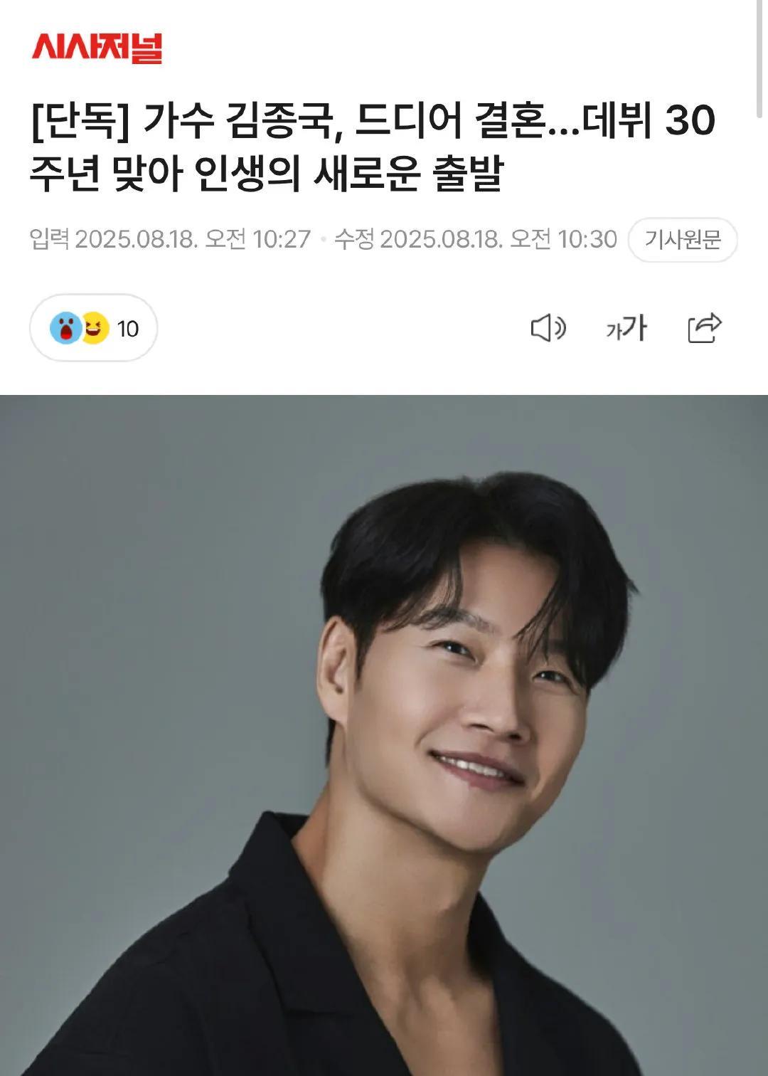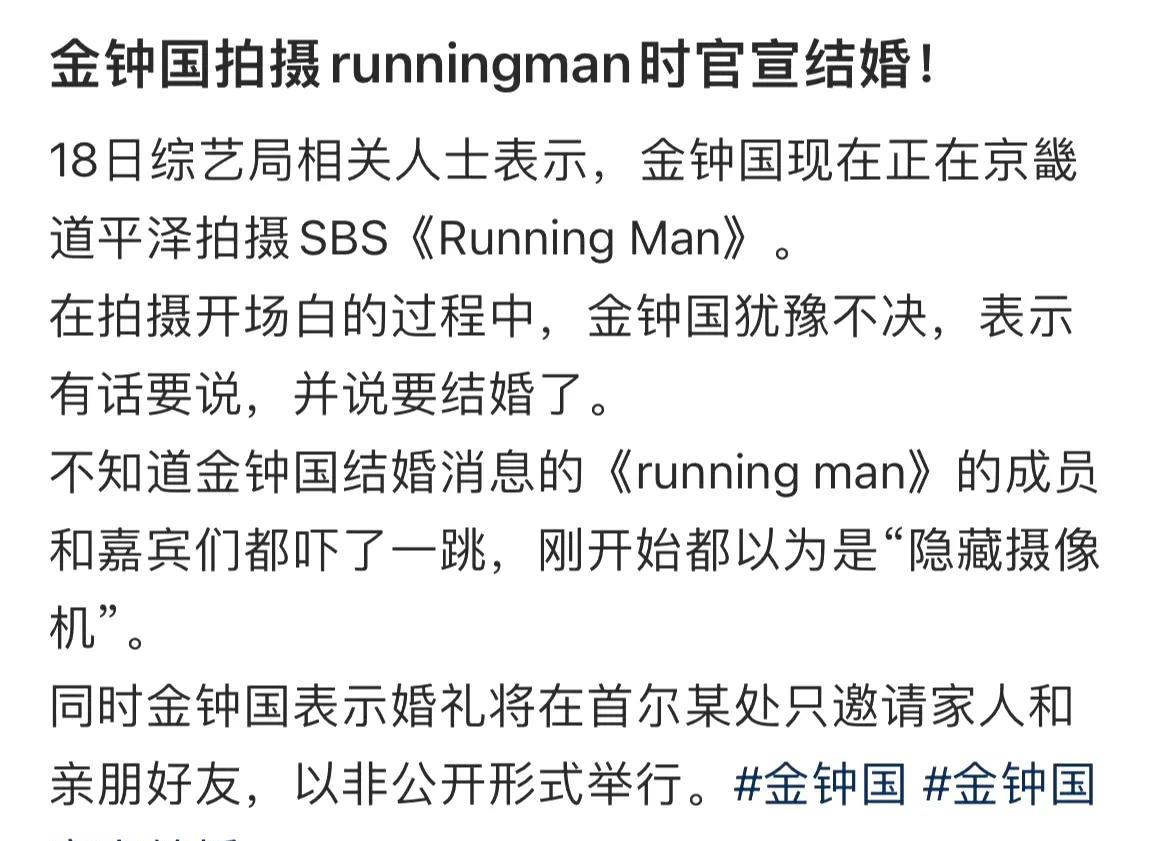 《18 日韩媒炸锅消息:金钟国官宣结婚啦,首尔私密婚礼开启 30 周年新篇》