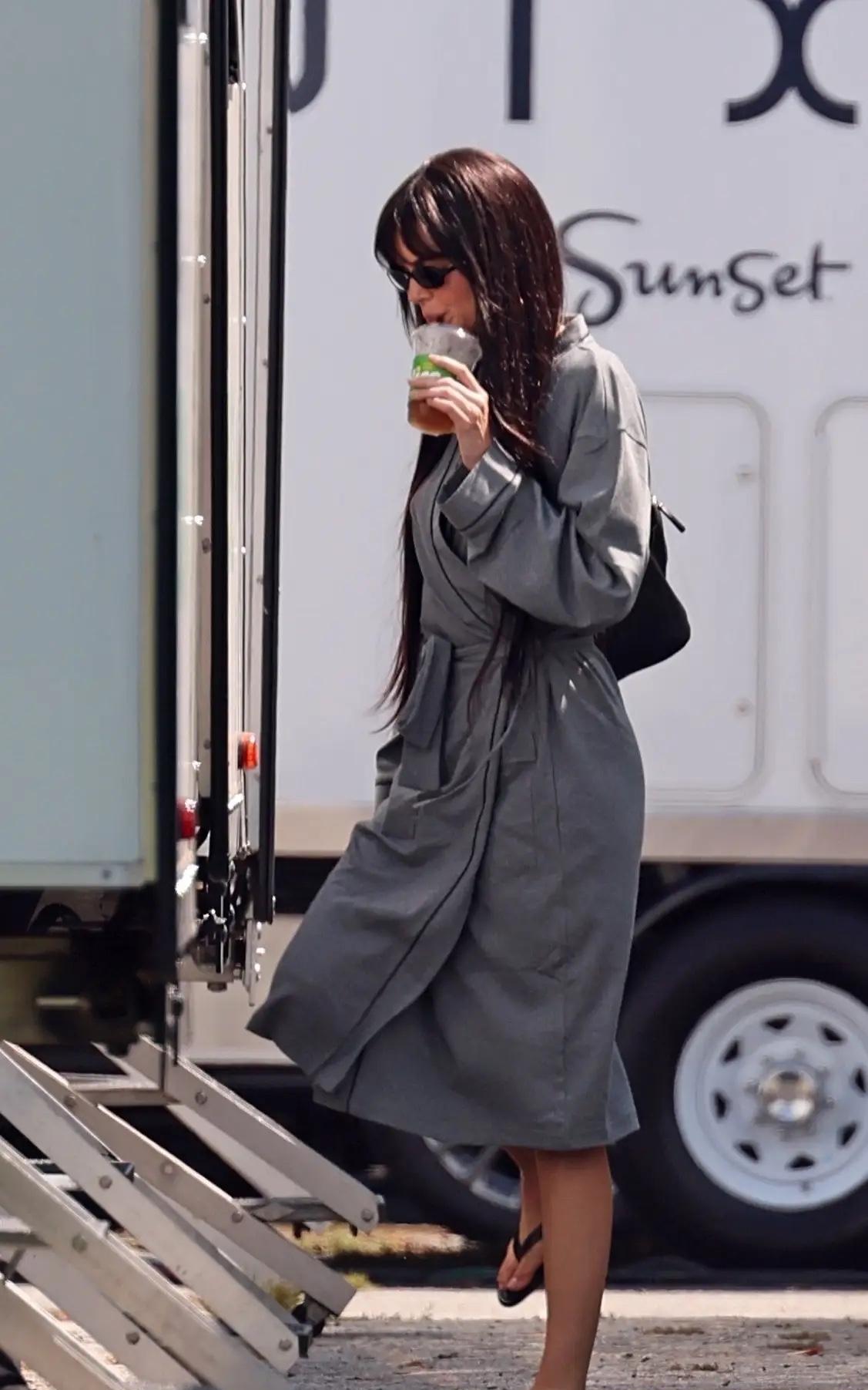 肯豆 最新戴假发拍摄路透,罕见的刘海造型~ Kendall Jenner今天在好莱坞日落高尔摄影棚拍广告,确认过眼神是肯豆[呲牙]