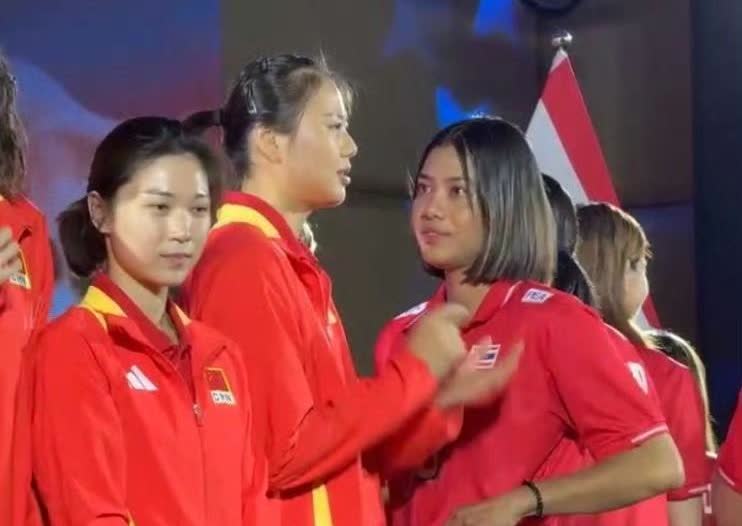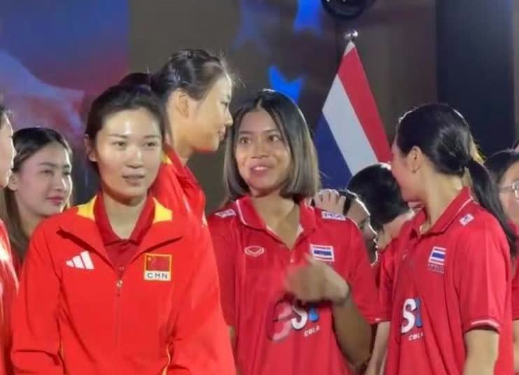 姐妹情深!亚洲姐妹花中国女排跟泰国女排队长,龚翔宇和阿耶查拉蓬深情拥抱!这样一对比,我们的队长龚翔宇比阿耶查拉蓬还白一点!我很好奇,她俩是用什么语言来交流的呢,看她们聊得很起劲!小宇的口才是真的好,当了队长后讲话格外流利!李盈莹和王梦洁俩人关系可真好,在台上也是聊得那么开心!