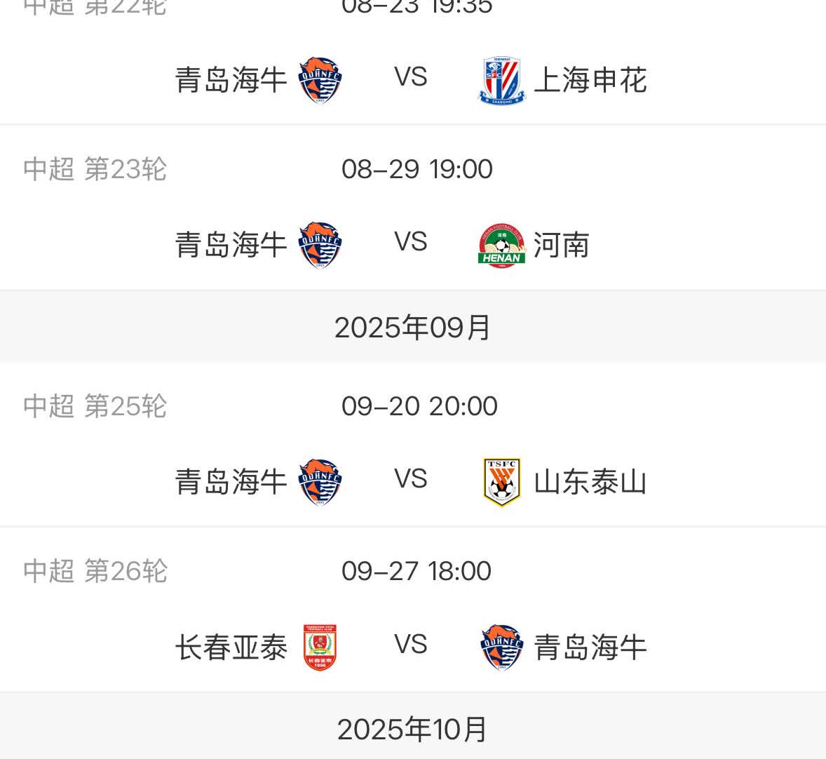 青岛海牛接下来的几个对手都不好踢啊,上海申花是要争冠的。长春亚泰和梅州客家都是保级直接对手。河南队也没脱离降级区。而山东泰山这些年一直是青岛海牛的苦主。 不过近期,青岛海牛的状态已经明显反弹了。如果能顺利度过这段魔鬼赛程,保级希望会非常大的。