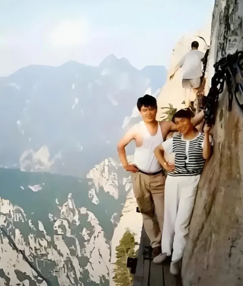 三十前,这样登华山,人们都敢!现在应该不允许了吧!