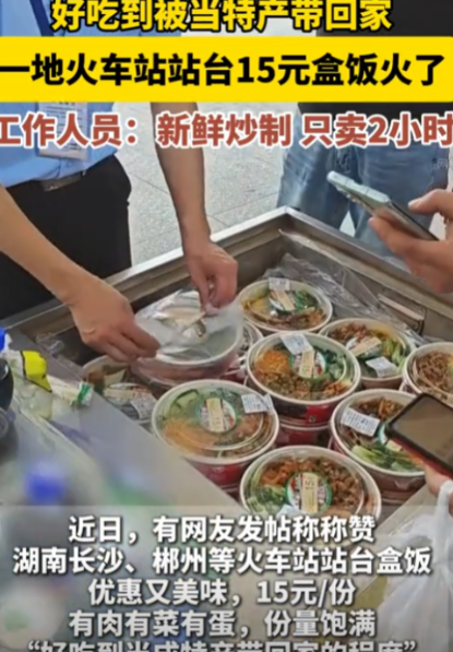 建议全国推广!湖南长沙,一男生假期坐火车回家,在火车站候车时,发现火车站站台的盒饭只要15块钱,就买了一份,本以为吃饱就可以了,结果却被盒饭的味道惊艳到,甚至称赞说:要把这个盒饭让我当成特产带回给家里人!