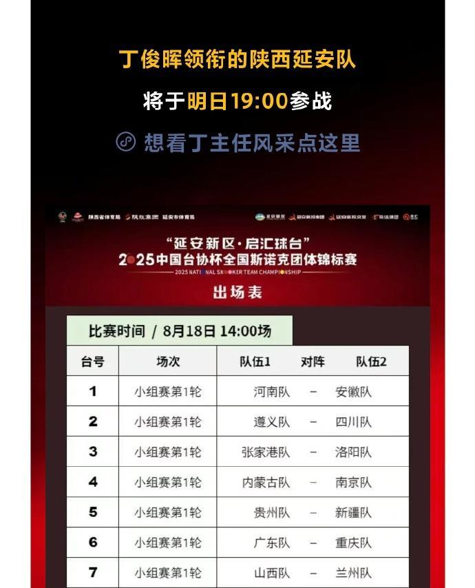 斯诺克:2025全国斯诺克团体锦标赛今天开打,丁俊晖、白雨露、吴宜泽、雷佩凡领衔出战! 今天19:00,丁俊晖领衔的陕西延安队首场对阵辽宁队。