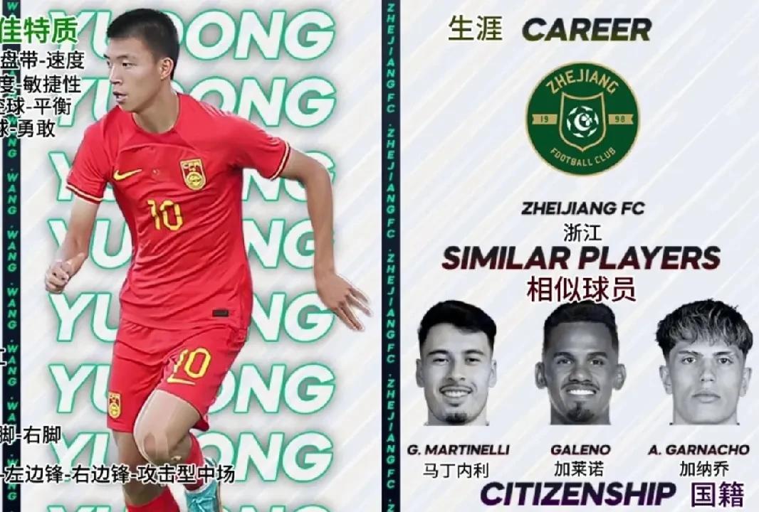 巴西球探网(Brazil Scout)发布浙江FC19岁球员王钰栋的介绍视频!这是暨著名球探网(football Talent Scout)收录后的又一机构关注王钰栋。 该网站在足球领域是非常专业的球探网站,他在职业足球圈非常出名。他所关注的球员全部是来自世界23岁以下的足球未来之星。 该网站评估结果是认为王钰栋优点是速度、爆发力、灵活度、平衡性、篮球能力、控球能力、关键传球和勇敢,弱点是力量。 该网站认为王钰栋未来长成有三个球员模板的方向,分别是加纳乔、马丁内利和马莱诺南美球员风格。 巧合的是,之前著名球探网football Talent Scout和Brazil Scout一样也认未来王钰栋可能长成模板,是阿森纳的巴西球员马丁内利。