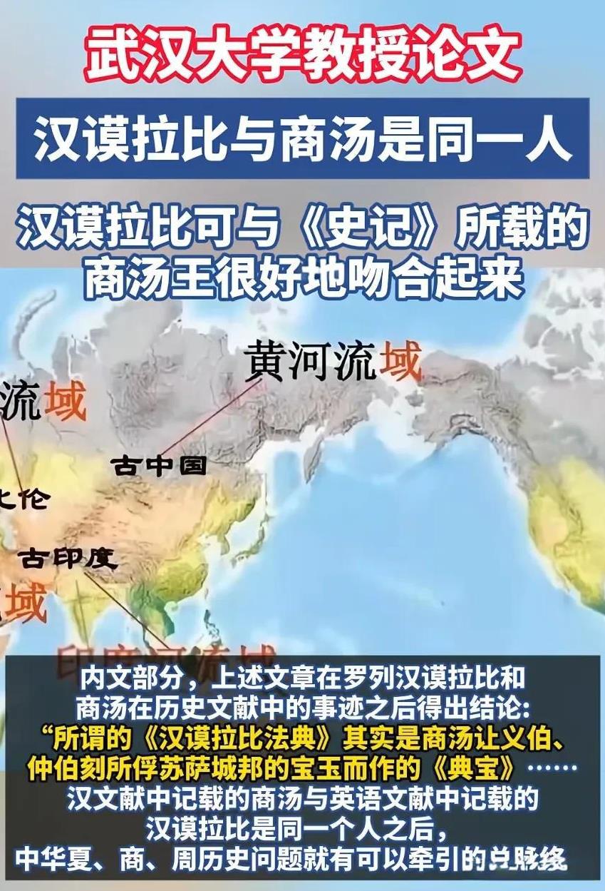 大学教授新发现:汉谟拉比与商汤竟是同一人?! 《汉谟拉比法典》还是挺有知名度的,就算不了解历史的80后90后应该也很熟悉,因为周杰伦的《爱在西元前》的第一句歌词就是“古巴比伦王颁布了汉谟拉比法典,刻在黑色的玄武岩,距今已经三千七百多年”。 我也很奇怪汉谟拉比是古巴比伦王国的第六任君主,商汤是商王朝的建立者,他俩个人应该属于八竿子都打不着的人吧,他们俩怎么就成了同一个人了呢?看来这大学教授研究地很透彻,不服不行啊!