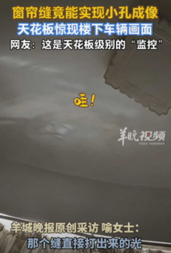 解释不清了?湖北武汉,一女子在家睡午觉时,因阳光太强烈就拉上了窗帘,不料,在她躺床上准备闭眼时,竟从屋顶上看到了楼下的汽车,感到异常惊奇的女子,立马拍下来发在了网上,网友:这才是真的天花板级的监控! 据羊城晚报8月17日的报道,中午吃完饭后没多久,女子就觉得有些困倦,便来到卧室里准备睡会觉。 而在看到阳光有些强烈,把整个房间都照的特别亮时,就默默的走到窗边,接着把窗帘给拉上了。 随后她就躺到床上,准备闭眼开始睡觉,然而,就在这个时候,她却在天花板上看到了神奇的一幕。 只见上面竟然出现了一副场景,最为神奇的是,还有辆汽车在移动,这时,女子的脑袋里就冒出了一个词语“小孔成像”。 不过对于这种现象,她还是有些不太理解,就窗帘的那点缝隙,也能实现该原理嘛,但除去这个答案外,貌似也没有其他的解释了。 此时的女子也没了睡衣,而是用手机将这一幕给拍了下来,接着给发到了网上,结果有几位网友看过后,就表示自己也遇到过,甚至有位网友看到的,还比这次要更为清晰。 该说不说,这要是没有知识傍身,还真不好解释这东西,不然就该往玄幻上想了,所以读书学知识还是非常有用的,而不是遇到此类情况,只会说句“见鬼了”! 那么对于这件事情,您有什么想说的呢?