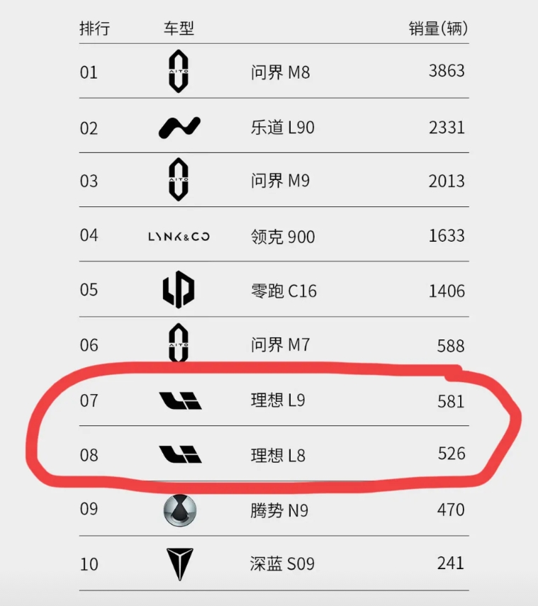 理想的L9和L8已经快销声匿迹了……上个月,理想L8只卖了3000台,L9更