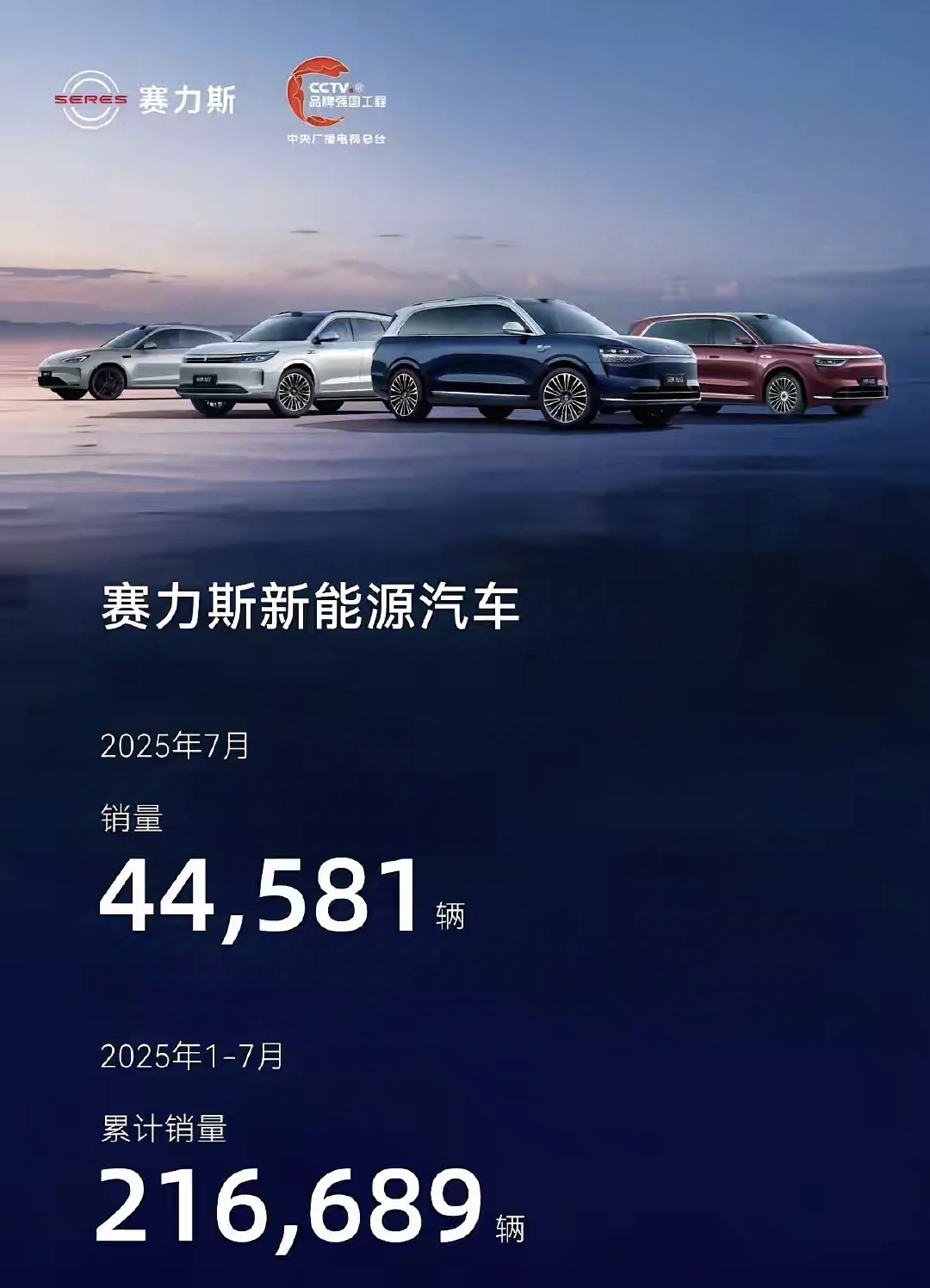 赛力斯,7个月累积销量216689辆。 小米, 7个月累积销量187401辆。