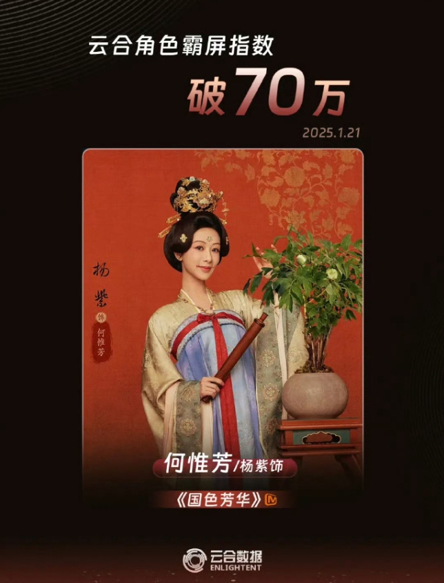 今年唯一一位破百万的角色,肖战的藏海只有90万,杨紫的何惟芳70万,截至到现在,近五年云合单日霸屏指数破百万的角色增至17位,其中赵丽颖和杨洋各有两个角色上榜,赵丽颖是《与凤行》和《风吹半夏》,杨洋是《你是我的荣耀》和《特战荣耀》,其他几位分别是郭麒麟《赘婿》,黄景瑜《罚罪》,(张译,张颂文,李一桐,高叶)《狂飙》,杨紫《长相思1》,成毅《莲花楼》,白鹿《宁安如梦》,白敬亭《南来北往》,张若昀《庆余年2》,刘亦菲《玫瑰的故事》,杨幂《生万物》。