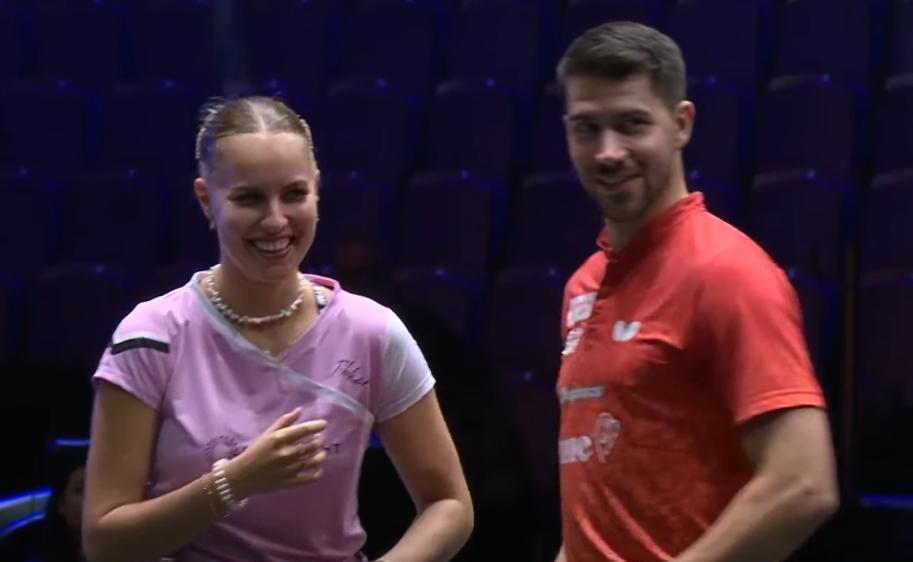 坏了,林诗栋/蒯曼也要输吗? 开局弗朗西斯卡/考夫蔓失误较多, 被动漫组合打了5:1 但弗朗西斯卡利用蒯曼回球高, 拧拉林诗栋的意图非常明显。 虽然现在失误多, 但一旦热开手将会非常麻烦。 多哈时,吉村和大藤就是用这一招打赢动漫组合的。 果然被我猜中了, 打开手的德国组合7:5反超。 最终11:9拿下了第一局。 哎,混双,看来还得莎头组合才行!