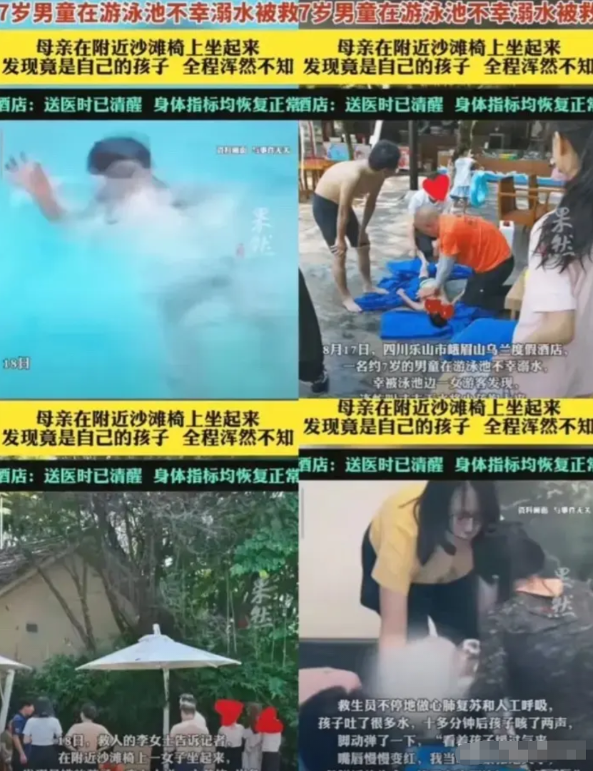 这女的当时就慌了神,站在那儿手足无措,只能眼睁睁看着救生员抢救孩子。周围人问她孩子怎么溺水的,她啥都不知道,孩子溺水的时候她压根就没察觉。