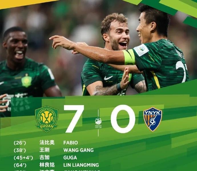 七球大胜、志在冠军 足协杯半决赛第二场,北京国安坐镇主场7-0大胜来访的云南玉坤