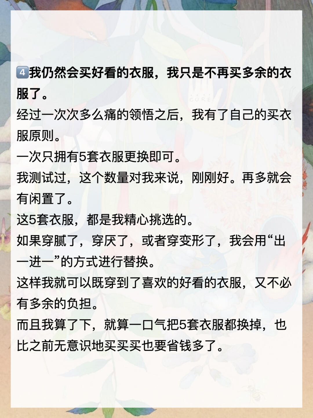 4️⃣我仍然会买好看的衣服,我只是不再买多余的衣服了。