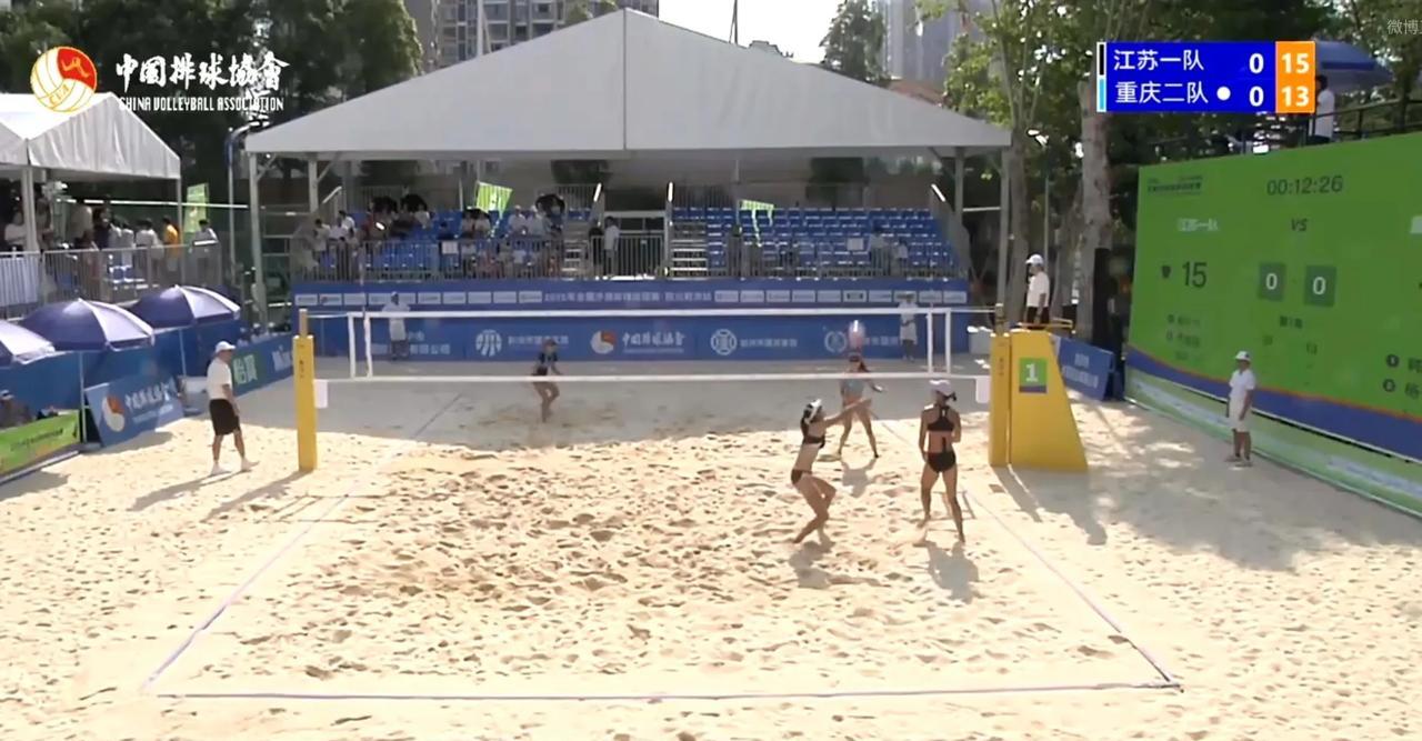 把2025年沙排的比赛场地定在四川射洪中学校园里,估计一是因为射洪中学的沙排向来成绩比较好,二是国家队的黄悦鑫的母校就是射洪中学。 今天上午就在射洪中学的场地里进行了江苏一队和重庆二队的沙排比赛。
