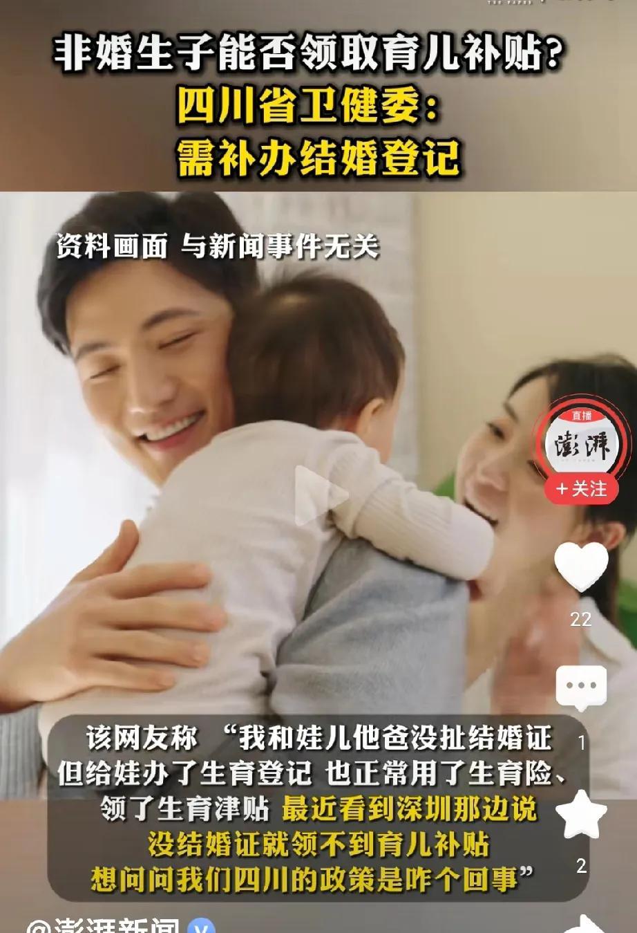 不要东说西说, 非婚生子要想育儿补贴, 官 方已经明确了! 要补办结婚登记, 也就是要有结婚证才行,才能领。