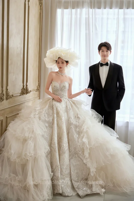 ▪️超大裙摆+蕾丝:每一步都摇曳生姿