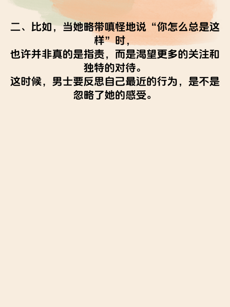 一、在男女情感的微妙世界里,女性的情感变化常常藏在话语之中,等待着细心的男士去解读。她们的每一句话,都可能是内心真实意图的线索。 二、比如,当她略带嗔怪地说“你怎么总是这样”时,也许并非真的是指责,而是渴望更多的关注和独特的对待。这时候,男士要反思自己最近的行为,是不是忽略了她的感受。 三、又或者,她突然感慨“要是能回到过去就好了”,这可能意味着她对当下的某些方面不太满意,渴望一种简单纯粹的美好。你可以试着倾听她的向往,一起憧憬一些未来的小美好,给她安慰。 四、还有,当她笑着说“你真有意思”,这往往是对你产生好感的信号。抓住这个时机,进一步展现你的魅力和风趣,加深彼此的吸引力。 五、所以,男士们要学会敏锐捕捉女性话语背后的情感密码,用心去回应,才能更好地走进她们的内心,让情感升温。