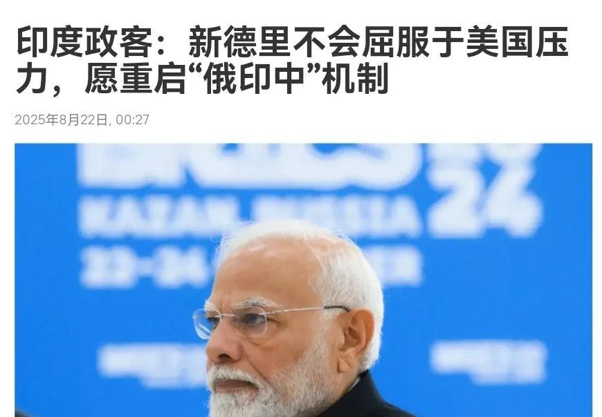 印度政客表示,在中俄印机制中,印度必须占据强势地位!8月22日,根据外媒报道,印度执政党人民党成员萨维奥·罗德里格斯表示,印度总理纳伦德拉·莫迪领导下的外交政策“基于国家利益,而非外部压力”。印度向美国传递的信息很明确:印度不是一个交易型的玩家,而是文明强国。 而在谈及重启“俄印中”机制的可能性时,罗德里格斯表示,尽管与中国存在尚未解决的边界争端,但经济务实主义不容忽视。‘俄印中’机制有望成为欧亚大陆的稳定平台,并增强印度作为调解人的角色。但印度只会以强势地位参与该机制。很显然,面对当下中印关系转暖,美印关系出现巨大波折,在与各方打交道时,来自于印度内部的声音,这是正竭力的保持印度的自尊。 当然,至于印度到底是一个交易型的玩家,还是一个文明强国,可能对于美国而言并不重要。不管印度内部如何认定,但是事实就是美国对印关税,促使了印度立场的大转变。而至于谈及中俄印双方合作时,无疑,印度明显是想要借助该机制对冲美国的压力。印度前脚与我们会晤,后脚苏杰生就访问俄罗斯,就是这方面的明证。 印度政客声称,印度只会以强势地位参与该机制。但是,印度是不是处于强势地位,这取决于印度的综合实力。中俄印三方机制,早在上个世纪九十年代就提出了,但是客观而言,这个机制运转并不是很顺畅。现在印度内部传出三方合作的呼声,这从侧面说明,印度面临的压力极大。更为重要的是,如果印度刻意强调强势地位,而不是突出合作,那印度承压处境,恐怕也很难改善。
