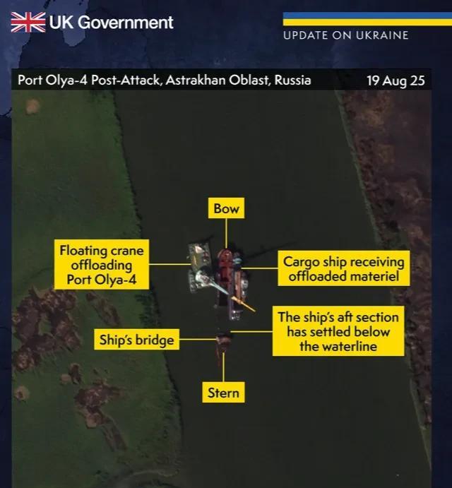 英国情报显示:乌军无人机里海“出手”,载沙赫德无人机货船惨被击沉 乌克兰持续以无人机打击俄罗斯纵深区域,一艘载有伊朗军用物资的船只不幸受损。 乌媒援引英国国防部在X平台的报告称: 袭击奥利亚港: 乌克兰总参谋部报告,2025年8月14日,乌军在里海奥利亚港对一艘俄罗斯货船发动无人机袭击。该船载有来自伊朗的装备弹药,含无人机零件,部分沉没。 8月19日卫星图像显示,俄方正试图抢救剩余货物。据乌总参谋部,奥利亚港是向俄军供应伊朗武器的重要物流枢纽。 打击的意义: 此次袭击发生在距乌边境约640公里处,凸显乌无人机常深入俄领土攻击,也暴露出俄防空系统在保护军事和工业设施方面的困境。 英国情报部门透露,乌不断增强无人机能力,让俄难以掌控物流通道。 伊朗在战争中的角色: 伊朗为俄提供火炮弹药、弹道导弹及大量神风敢死队攻击无人机,还积极支持在俄本土生产此类无人机。