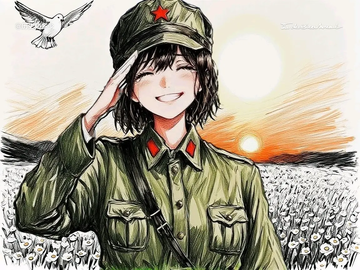 飒爽英姿五尺枪,曙光初照演兵场。中华儿女多奇志,不爱红装爱武装。