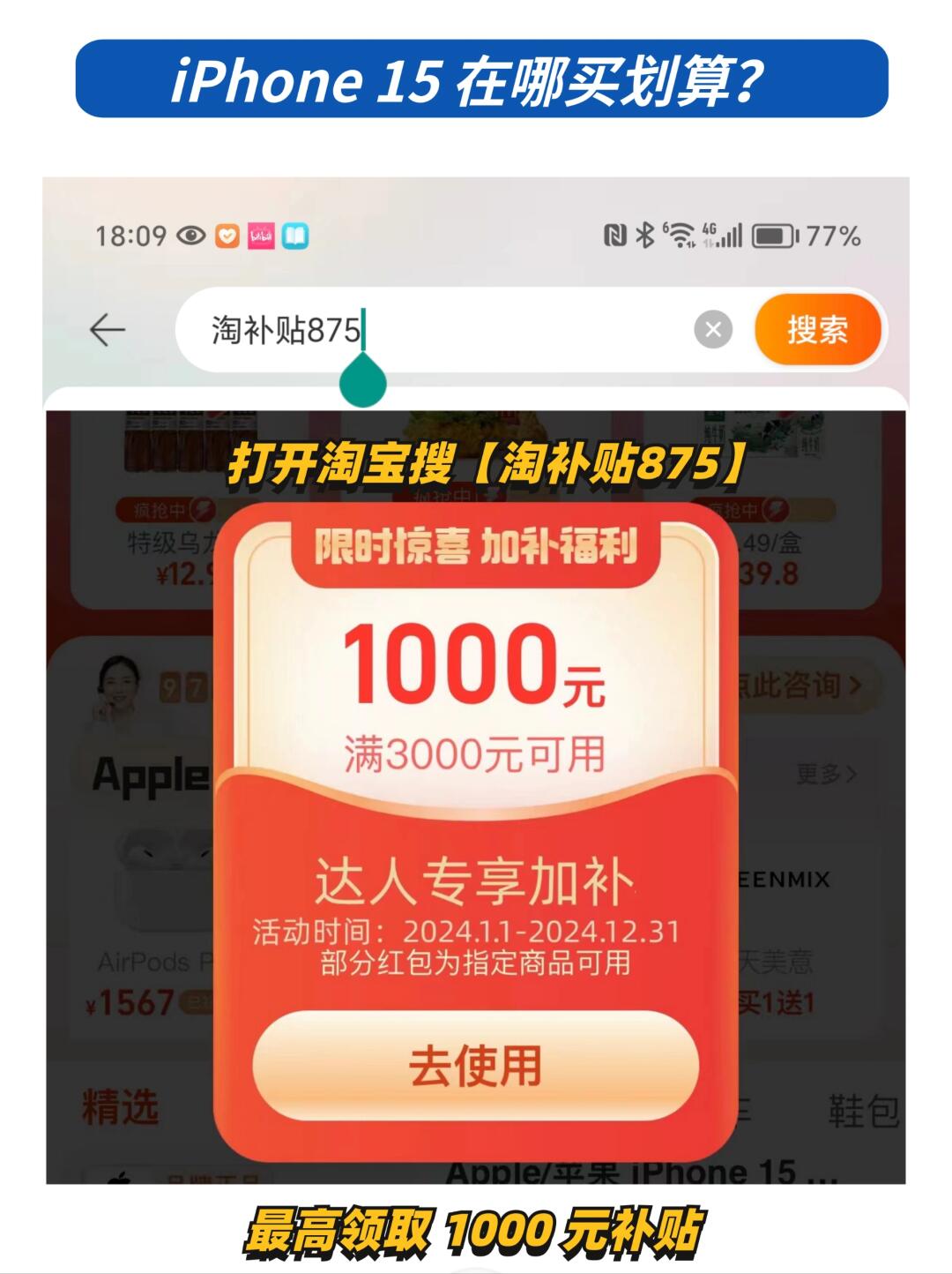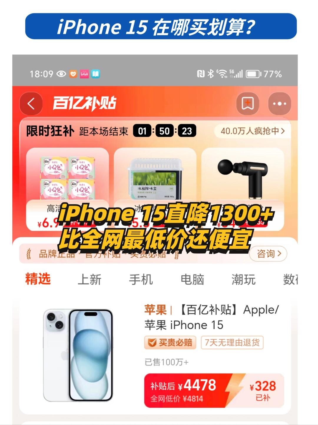 淘宝百亿补贴4月狂补!iPhone 15 128g 比官网便宜了整整1521!到手只要4498 元!价格真的香!