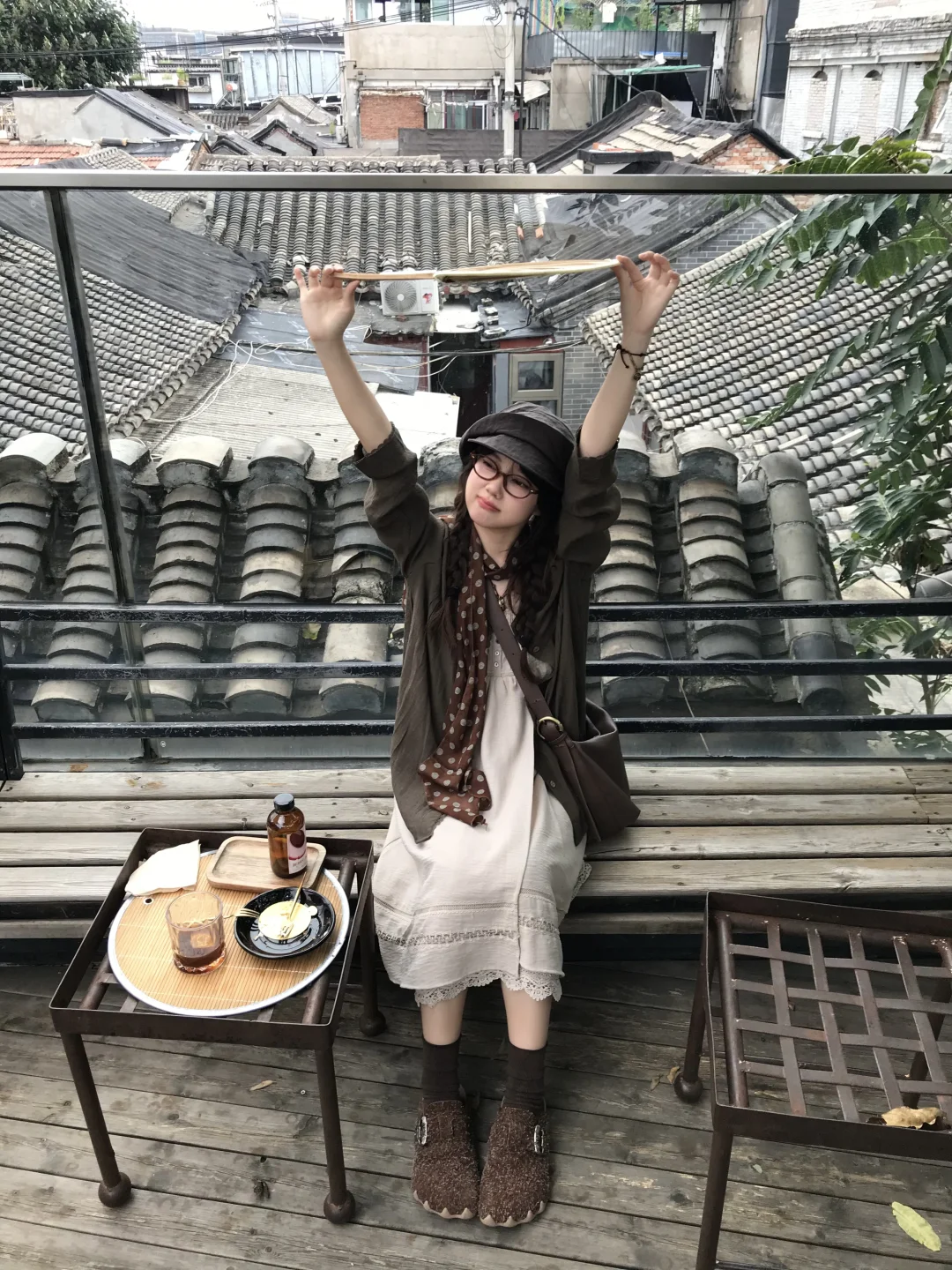 风里已经有了秋天的味道 已经开始期待两个月后的银杏啦! 🪟在杨梅竹斜街走走逛逛 路过屋顶的咖啡店饮一杯☕️ 秋天好适合棕色系穿搭🌰浓浓复古味
