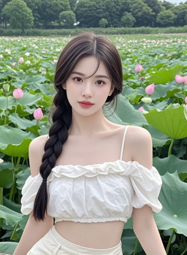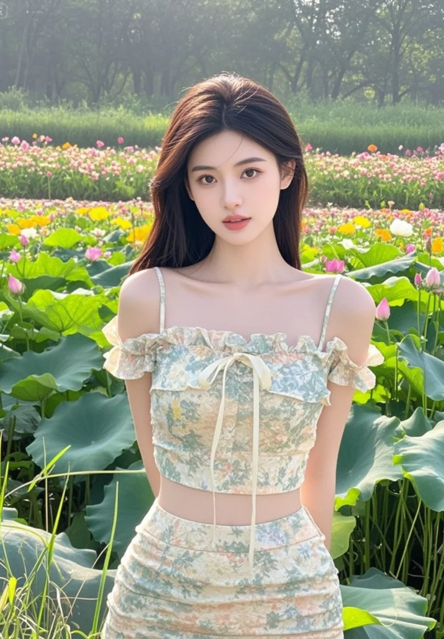 当美女遇上荷花,美得让人心动