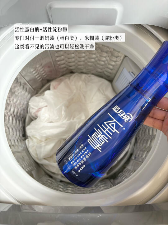 它还特别添加了活性蛋白酶+活性淀粉酶,专门对付干涸的奶渍、辅食渍