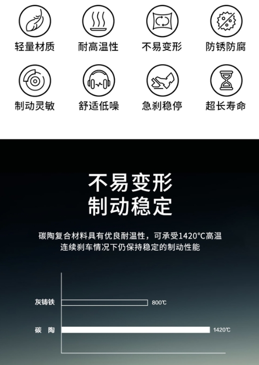 比亚迪不久之前推出了官方碳陶刹车,目前部分高配车型可以自费升级(前二1w,全车2w),虽然比亚迪底盘白瞎了这么好的刹车,不过不应该否认碳陶刹车的优势。 簧下质量大幅度减轻,操控性增强,极速提升,续航里程增加,不仅适合日常驾驶,也能在激烈驾驶中防热衰,提高制动性能。之前model s官方 选配的碳陶刹车大约11W。我认为目前小米su7 max版刹车系统确实不适合赛道场景,让动力不能尽情发挥,尤其是明年v8电机上车后,动力会更加狂暴,如果有碳陶刹车选配,能给进阶玩家多一些选择。