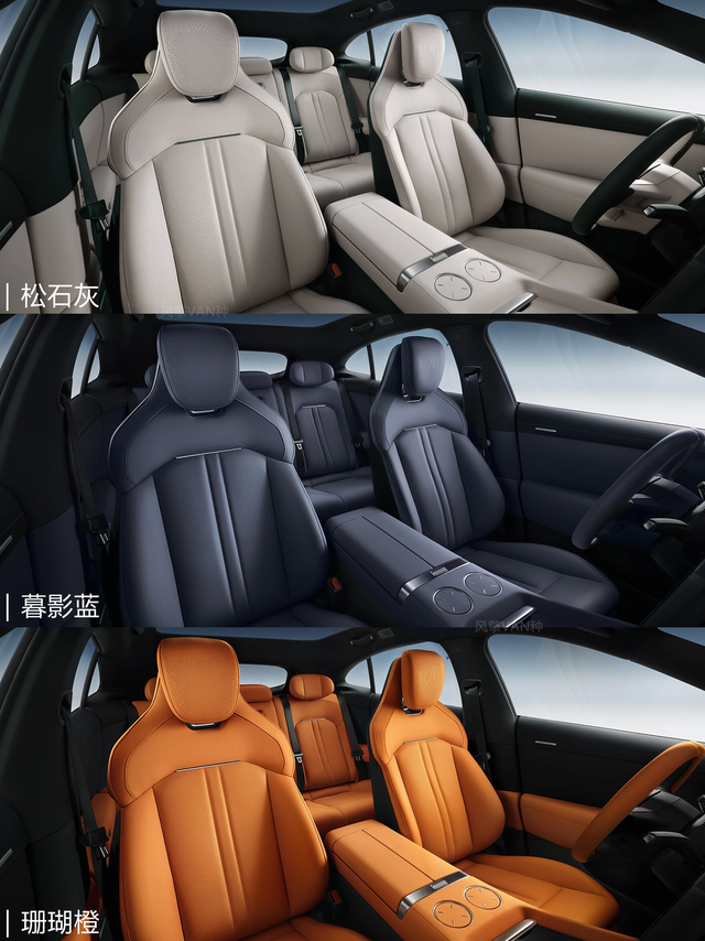 小米YU7共提供3款内饰配色,分别是松石灰、暮影蓝和珊瑚橙,其中松石灰为绿灰双色,暮影蓝内饰颜色较为统一,而珊瑚橙内饰整体为类似爱马仕橙的橙色与黑色双拼色。材质方面,小米YU7高配车型座椅打孔区域采用Nappa真皮覆盖。