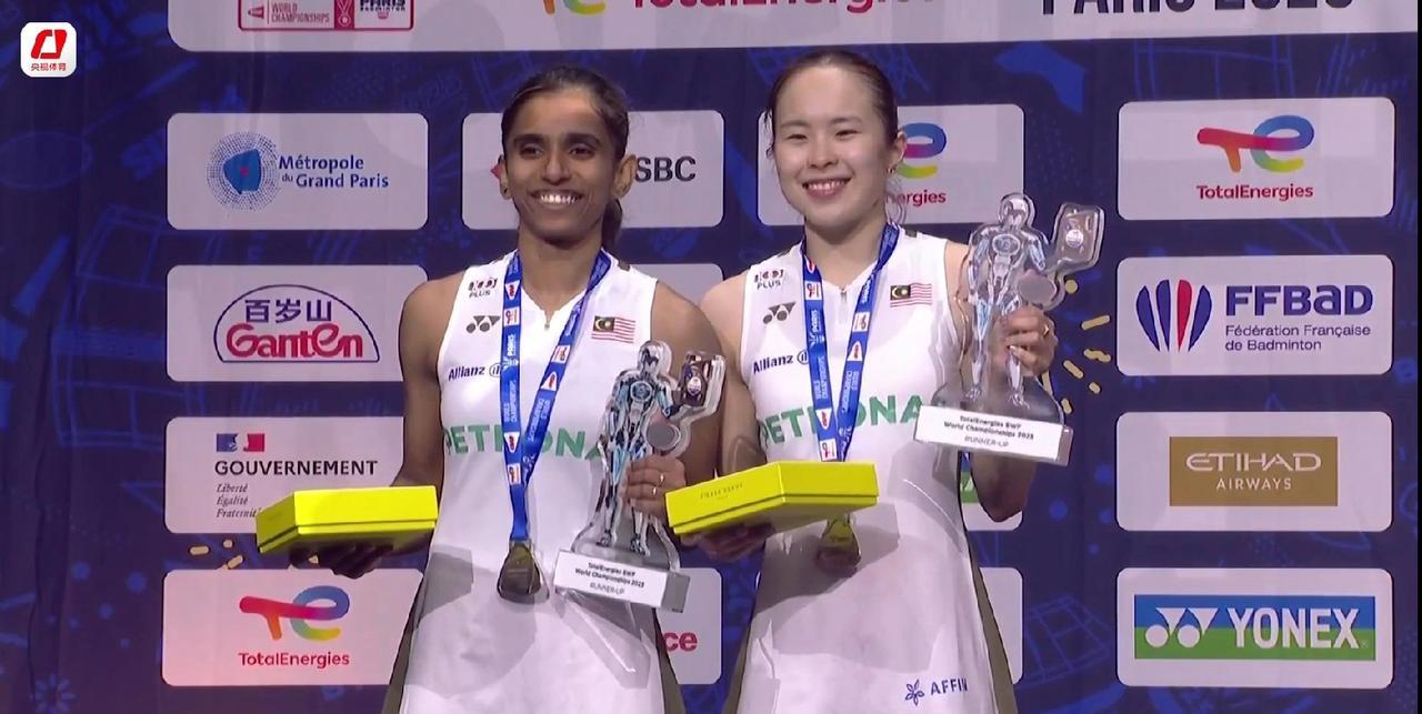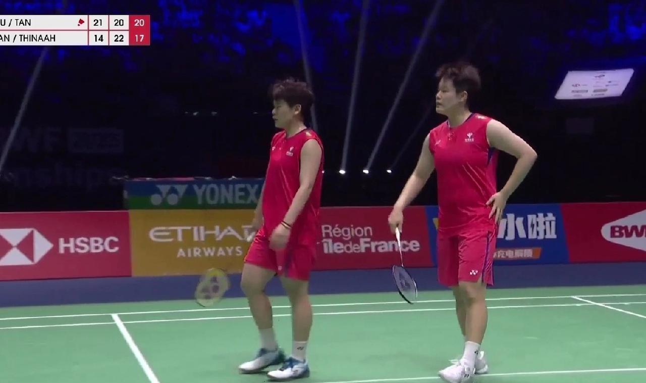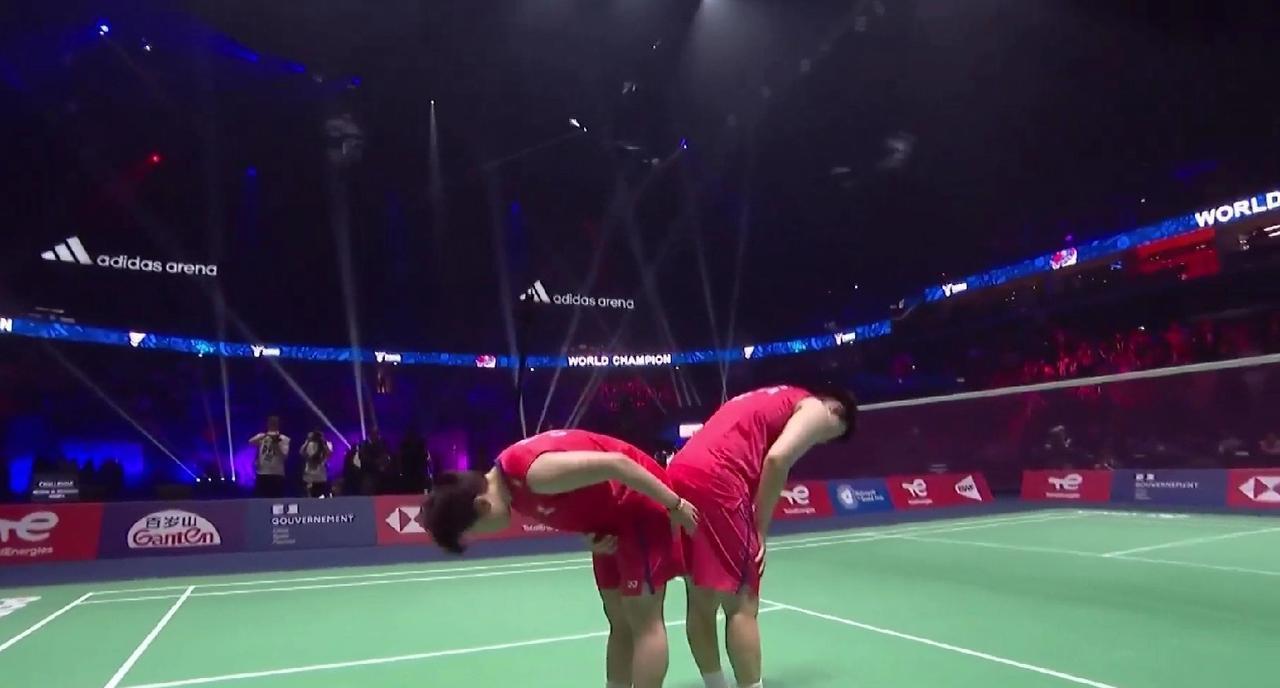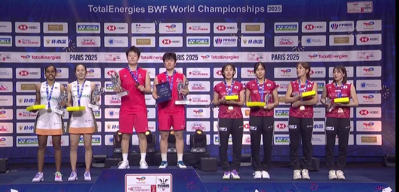 巴黎羽毛球世锦赛决赛,中国队在前两项混双和女单决赛都未能夺冠的局面下,巴黎奥运会亚军刘圣书/谭宁出战女双决赛,对阵马来西亚组合陈康乐/蒂娜,经过82分钟的三局鏖战,圣谭组合以21-14、20-22、21-17取胜,在一年前巴黎奥运会收获亚军的场地,将银牌换成了金牌,两对日本组合收获铜牌,其中,合作了11年、即将在本届赛事后拆对的“山羊组合”终于以一枚世锦赛奖牌谢幕。