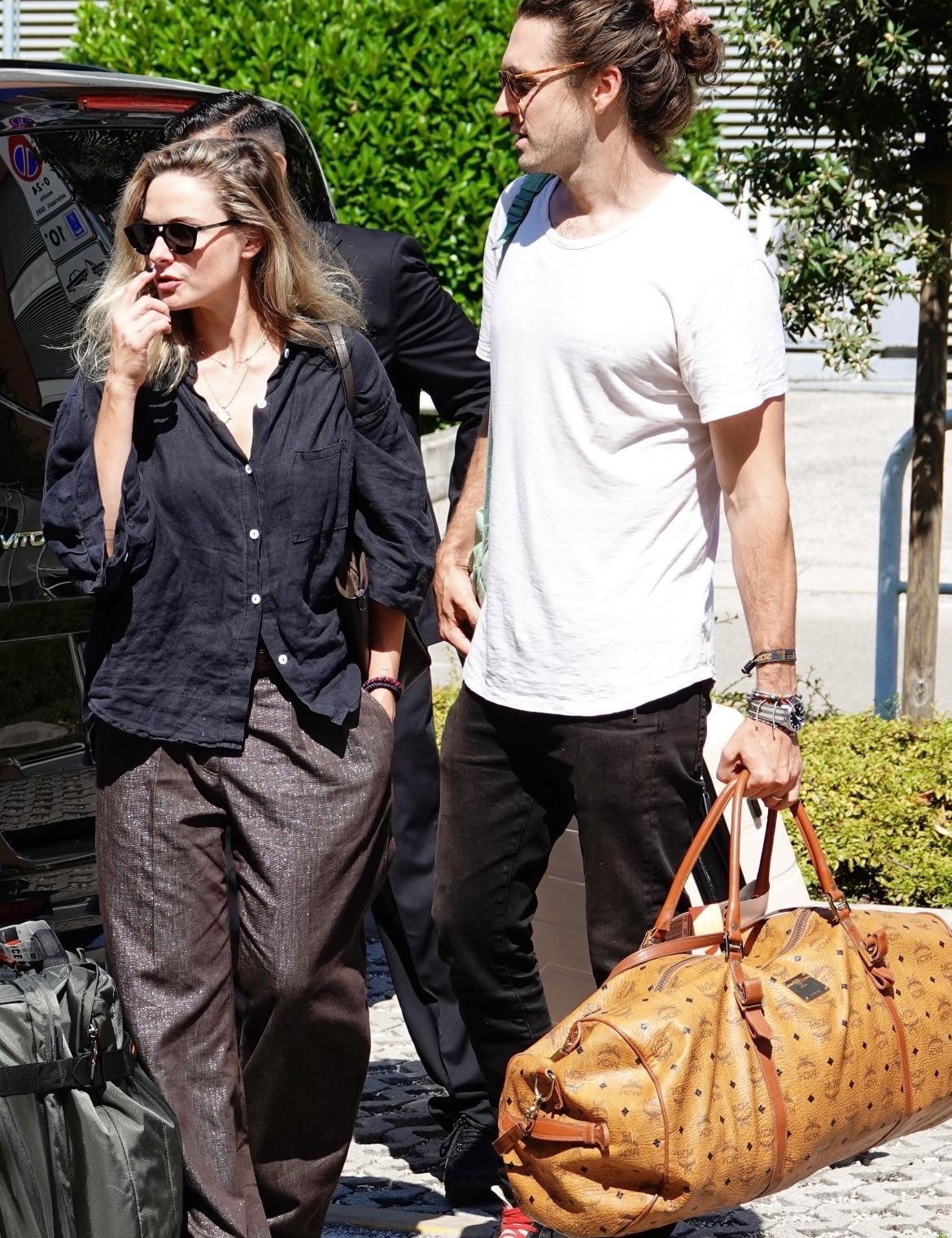 瑞典演员RebeccaFerguson和丈夫Rory今日抵达 威尼斯,机场