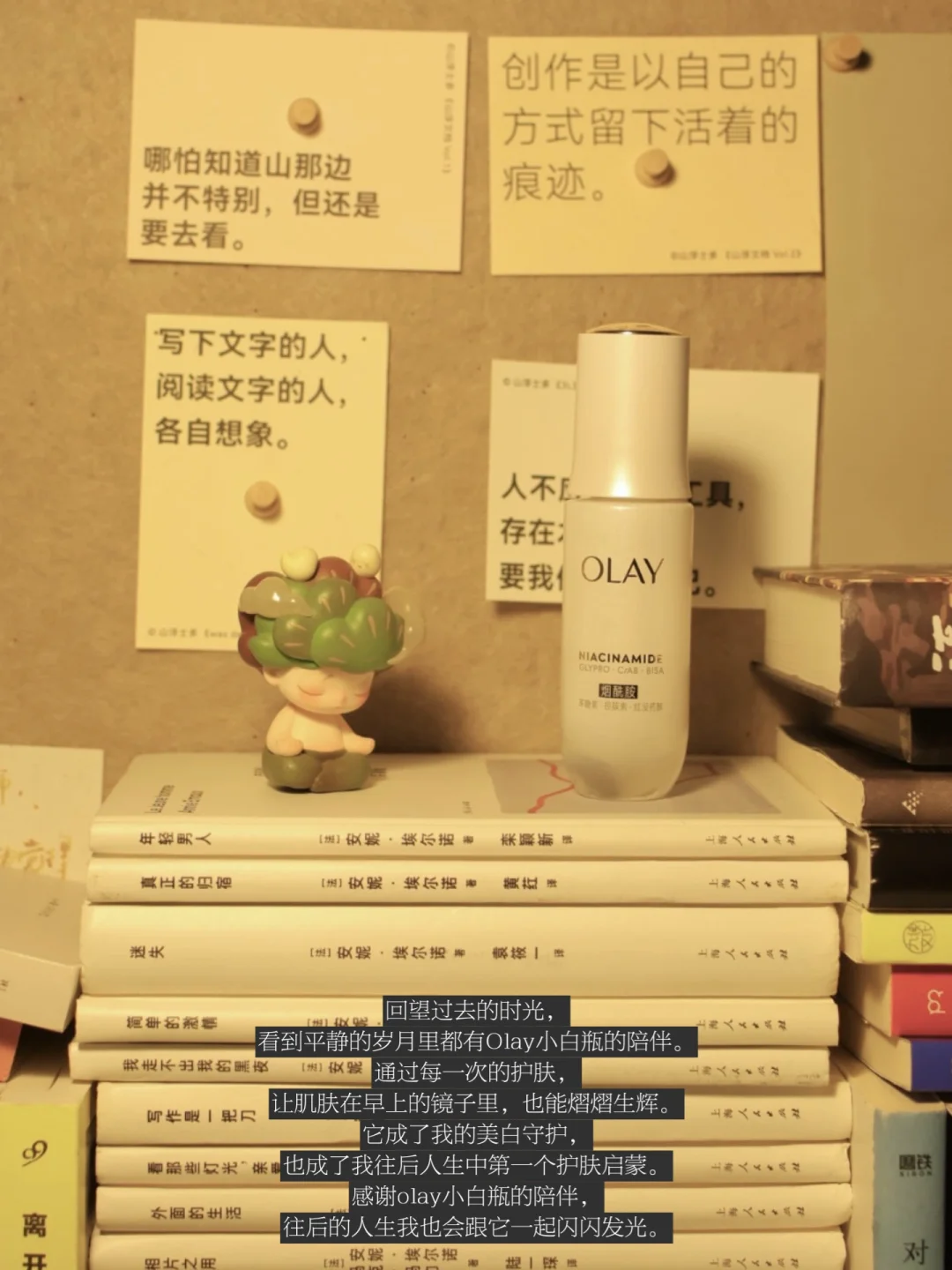 回望过去的时光,看到平静的岁月里都有Olay小白瓶的陪伴。通过每一次的护肤,让肌肤在早上的镜子里,也能熠熠生辉。它成了我的美白守护,也成了我往后人生中第一个护肤启蒙。感谢olay小白瓶的陪伴,往后的人生我也会跟它一起闪闪发光。