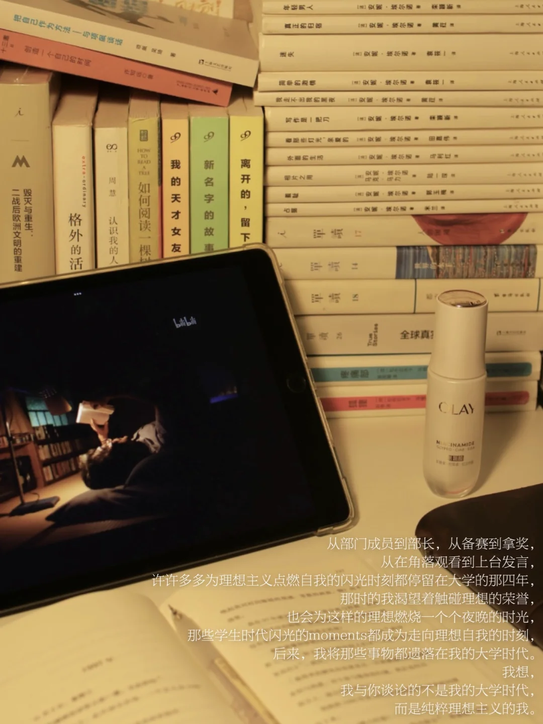 从部门成员到部长,从备赛到拿奖,从在角落观看到上台发言,许许多多为理想主义点燃自我的闪光时刻都停留在大学的那四年,那时的我渴望着触碰理想的荣誉,也会为这样的理想燃烧一个个夜晚的时光,那些学生时代闪光的moments都成为走向理想自我的时刻,后来,我将那些事物都遗落在我的大学时代。