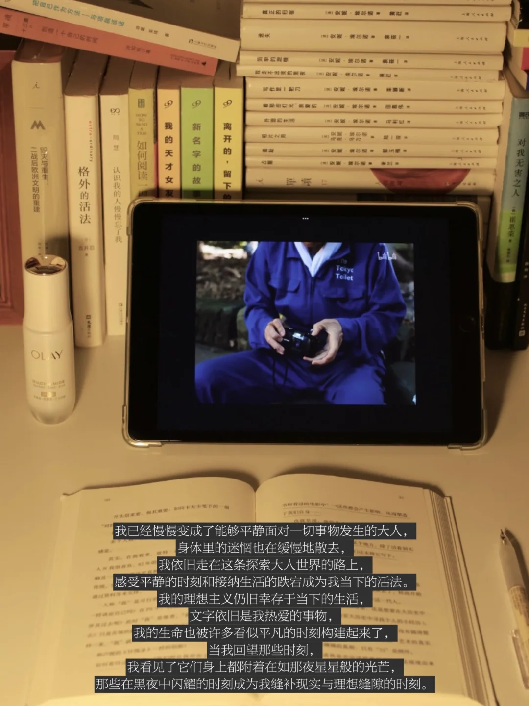 如今的我已经二十四岁了,变成了能够平静面对一切事物发生的大人。我的理想主义仍旧幸存于当下的生活,文字依旧是我热爱的事物,我的生命也被许多看似平凡的时刻构建起来了,当我回望那些时刻,我看见了它们身上都附着在如那夜星星般的光芒,那些在黑夜中闪耀的时刻成为我缝补现实与理想缝隙的时刻。