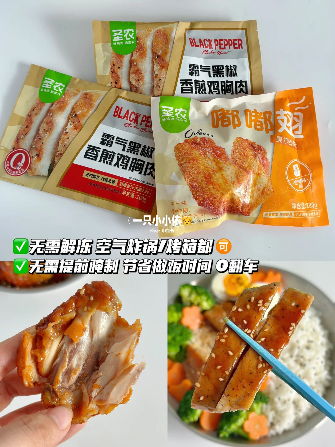 [哇R]家里的冰箱一直常囤着圣农的半成品,平时用来给孩子做盖饭真的超方便,不用解冻和腌制,直接放空气炸锅就能搞定,省了妈妈很多时间👏🏻