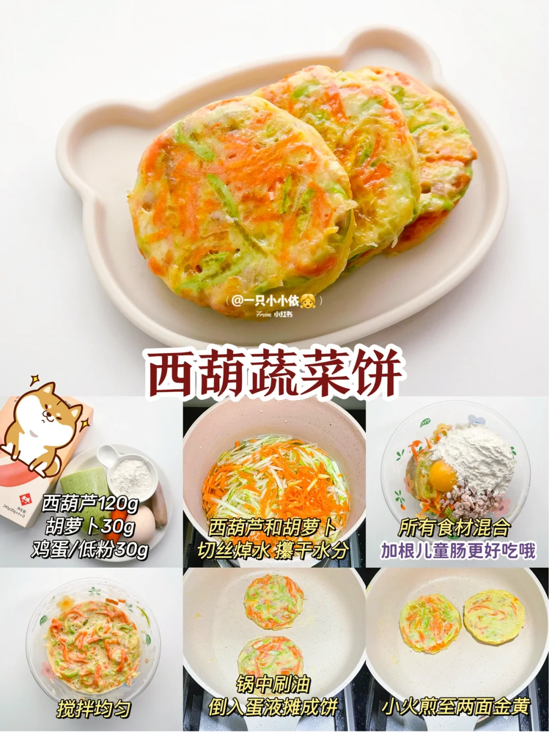 🔹食材:西葫芦120g、胡萝卜30g、鸡蛋、低粉30g