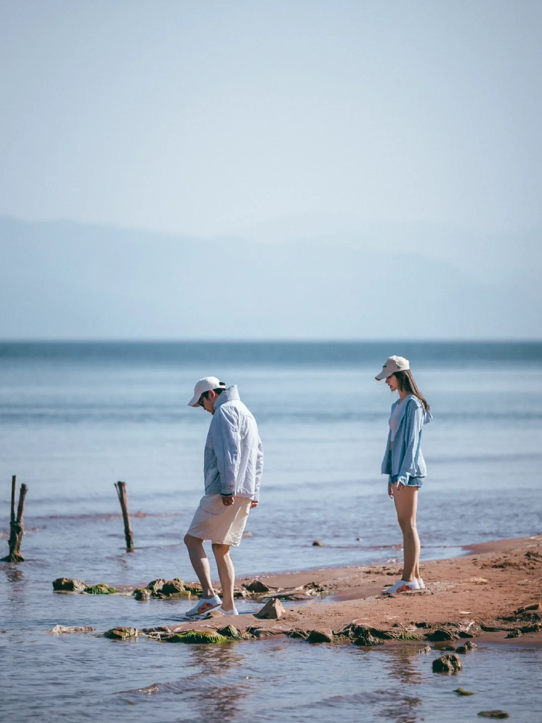 Day2️⃣:樱花谷门口的栈道看日出,也可以到樱花谷里玩白沙,个人建议过了樱花谷再往前走一些,车停在路边可以直接去到水边。