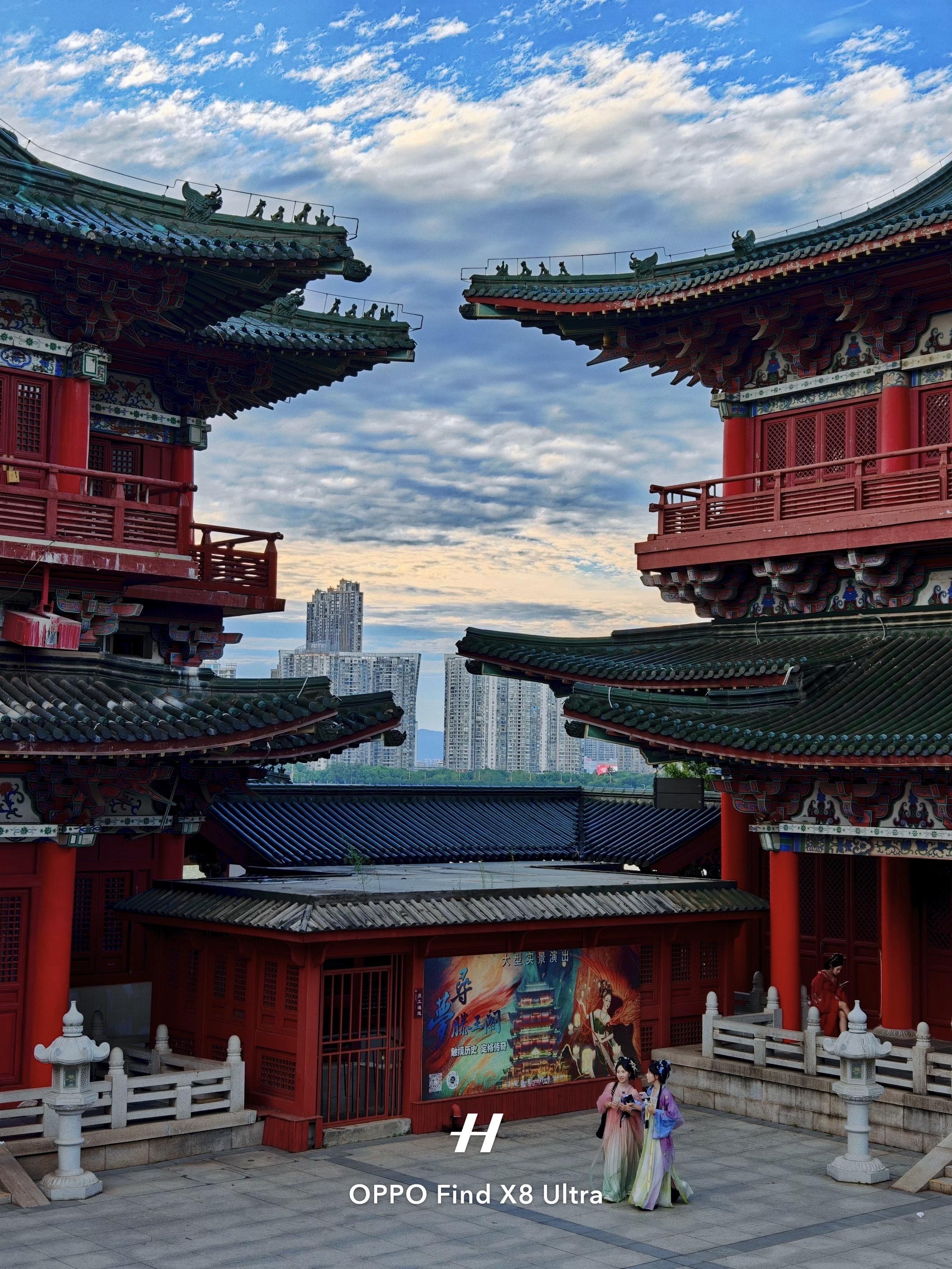 1️⃣ 去北园的天桥上:可以拍摄到屋檐和远处的摩天轮,古今对比 等待一对行人到来成为画面的点睛之笔