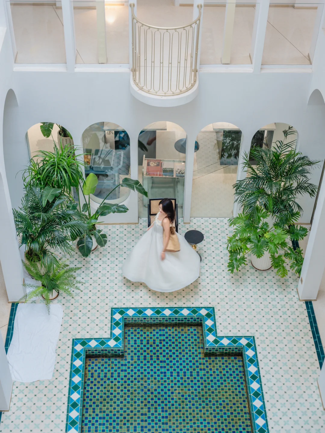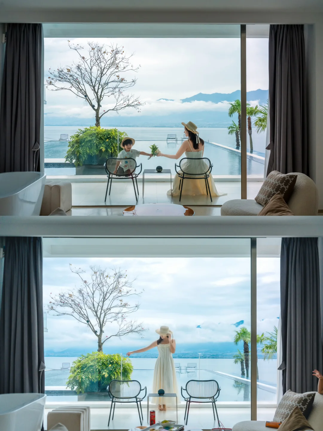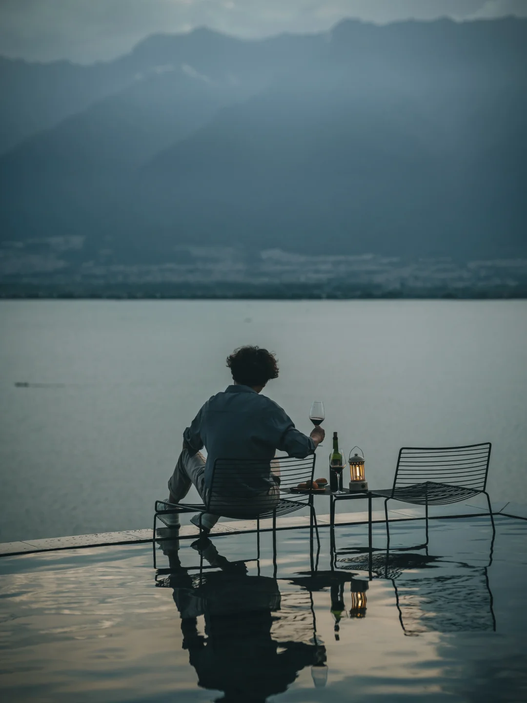 站在三楼天井处,从上往下拍,可以拍出复古欧式美照。四楼大厅和露台早上9点拍远处苍山的云朵,傍晚六点以后拍这个季节独有的洱海渔灯、拍夕阳落日,一整个绝绝子!