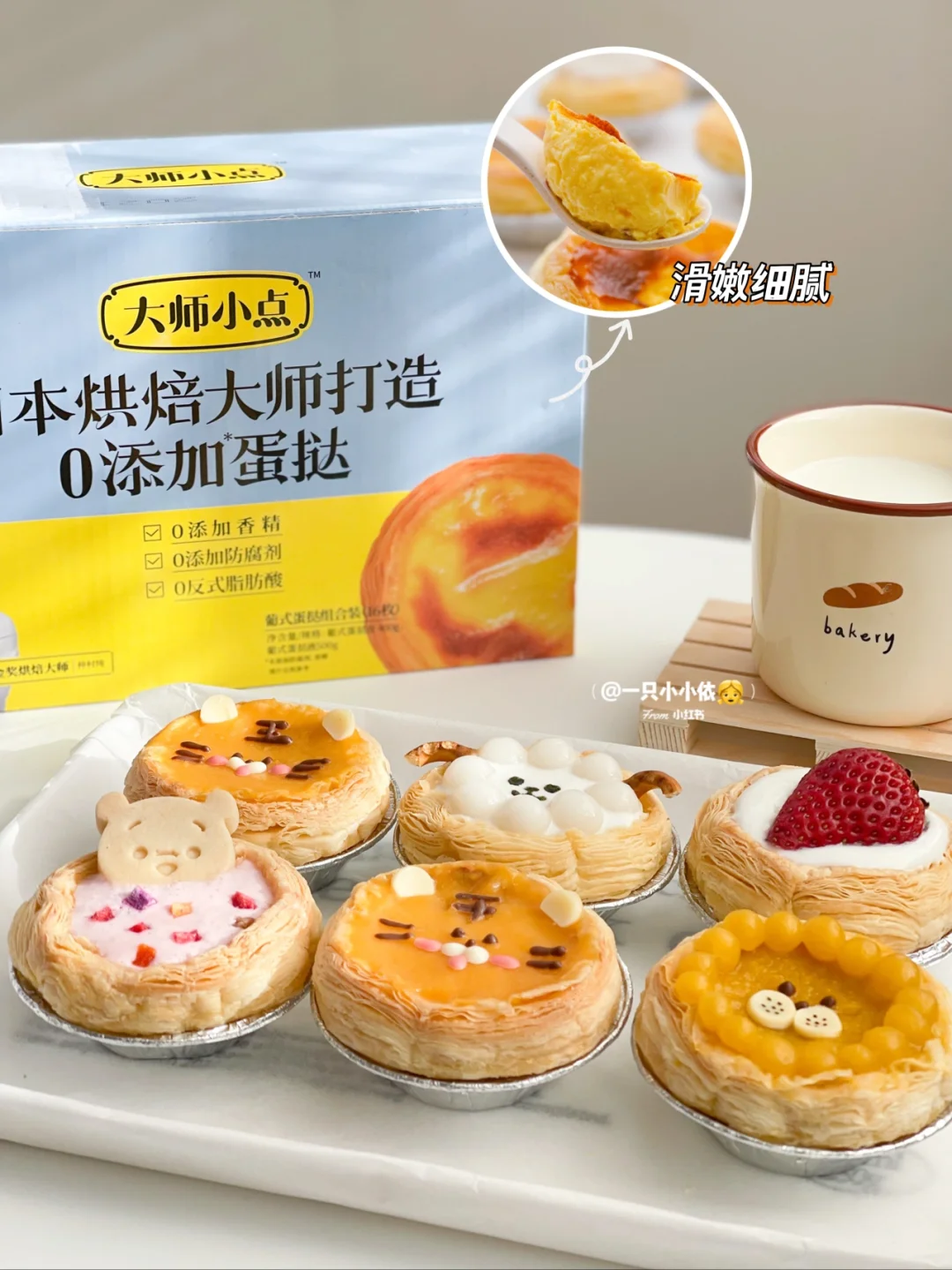 好看是加分项,好吃才是王道🧚♀️大师小点除了0添加之外,挞液原料也很用心:黄天鹅可生食鸡蛋液+新西兰安佳黄油+优质纯牛奶+德国稀奶油,烤出来香甜滑嫩又酥脆,甜度刚好,吃起来不会很腻!以前带她去肯德基只敢给她吃一口,现在吃一整个都很安心✨