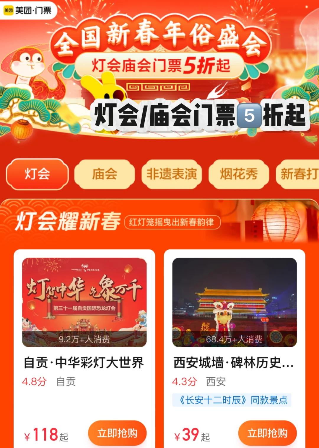 对了偷偷告诉你们:上美团App🔍“灯会体验” ,灯会门票最低5折起!!