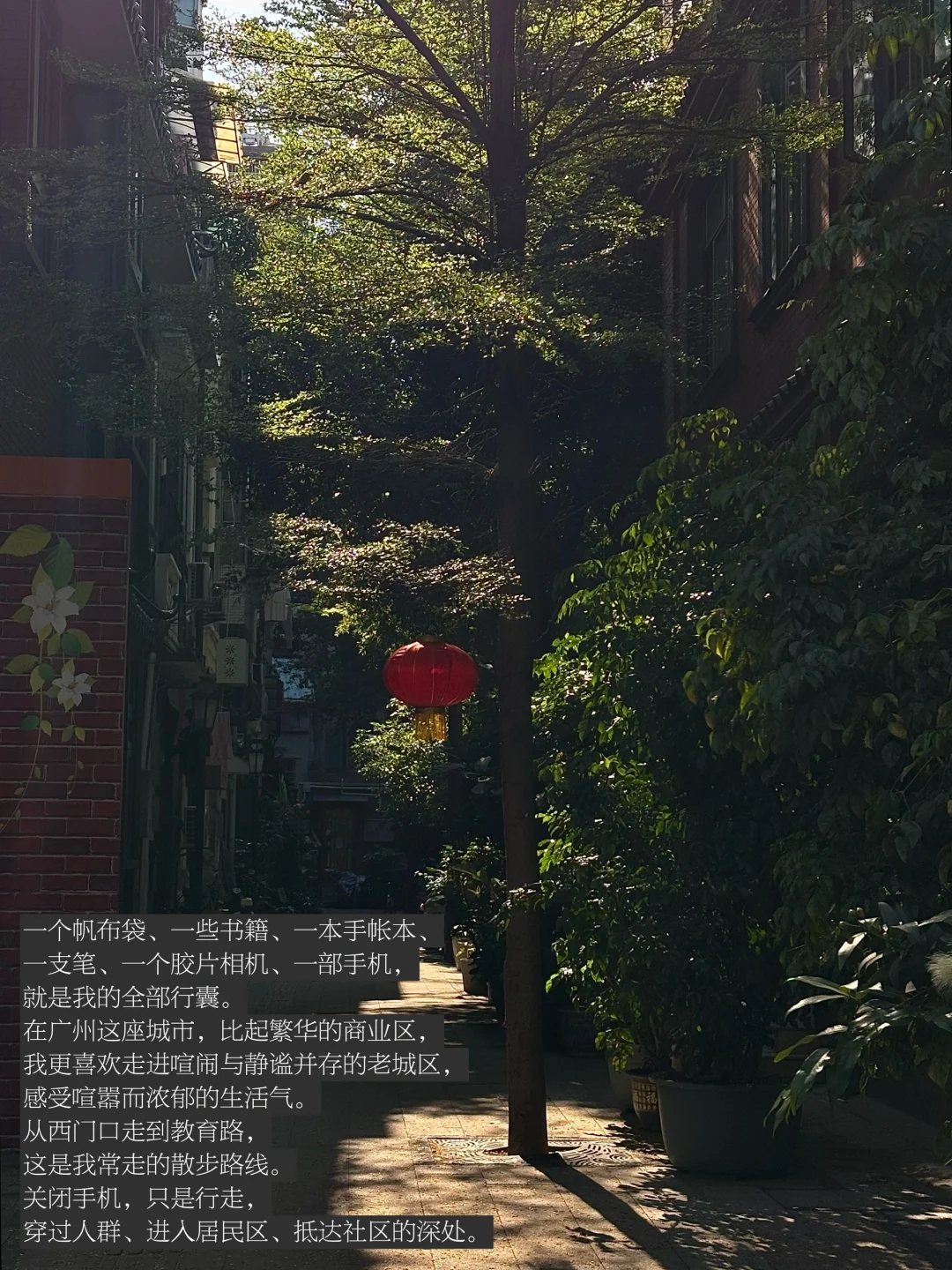 散步是我真正与繁忙脱轨的方式,在广州这座城市,比起繁华的商业区,我更喜欢走进喧闹与静谧并存的老城区,感受喧嚣而浓郁的生活气。从西门口走到教育路,这是我常走的散步路线。关闭手机,只是行走,穿过人群、进入居民区、抵达社区的深处。