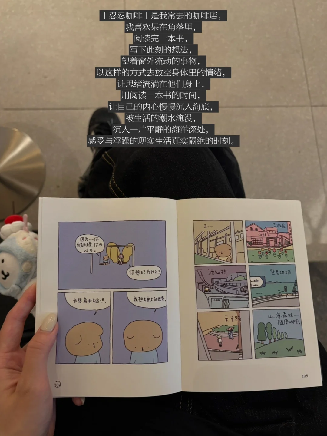 忍忍咖啡是我常去的咖啡店,我喜欢呆在角落里,阅读完一本书,写下此刻的想法,望着窗外流动的事物,以这样的方式去放空身体里的情绪,让思绪流淌在他们身上,用阅读一本书的时间,让自己的内心慢慢沉入海底,被生活的潮水淹没,沉入一片平静的海洋深处,感受与浮躁的现实生活真实隔绝的时刻。